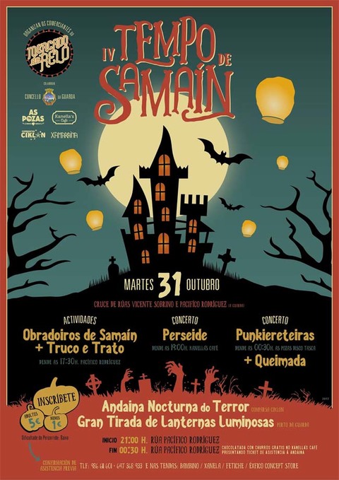 00:00 - Gran Tirada de Lanternas Luminosas no Porto de A Guarda, incluída na Andaina Nocturna do Terror.