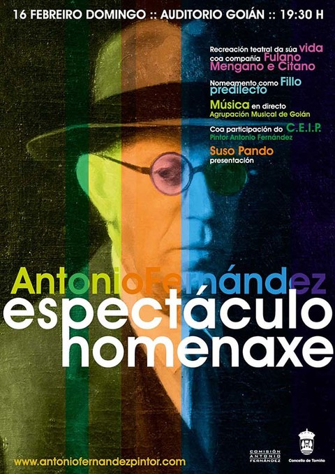 Lembramos que, tras o éxito de público obtido o domingo pasado, o concello de tomiño decidiu repor a actuación-homenaxe ao pintor antonio fernández, consistente nunha obra multimedia, con teatro a cargo da compañía fulano, mengano e citano; música, coa agrupación musical de goián e vídeo (alumnado ceip de goián).