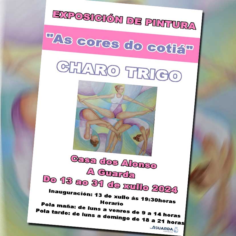 La exposición As Cores Do Cotiá presenta una colección de óleos sobre lienzo, inspirados en el deporte y la belleza de A Guarda, combinando elementos de la vida diaria y la tradición gallega