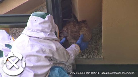 Retirada dun niño de vespa asiática no Rosal no ano 2014
