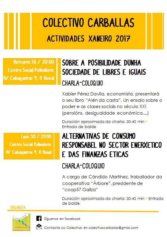 Actividades programadas para o mes de xaneriro polo Colectivo Carballas no Rosal