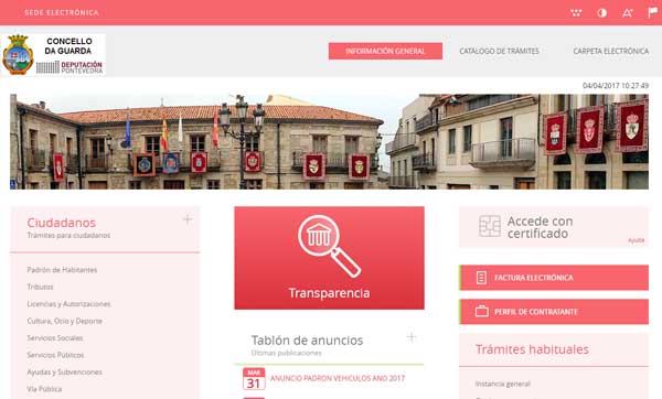 Con esta ferramenta o Concello da Guarda convertese nun municipio punteiro na prestación de servizos ao público, do cal serán beneficiarias todas as persoas e, en especial, aquelas que por distintas razóns non podan achegarse ás oficinas municipais para realizar en persoas os trámites administrativos. Grazas á nova Sede Electrónica do Concello, http://aguarda.sedelectronica.gal/info.0, os guardeses e guardesas poderán aforrar tempo, se reducirán as colas de espera no Concello e os funcionarios axilizarán o seu traballo diario.