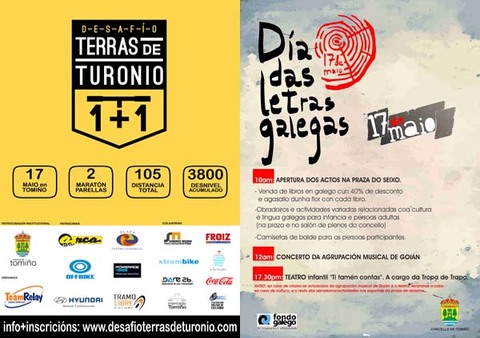 Destacar que, tamén este domingo, terá lugar o III Maratón en BTT "Desafío Terras de Turonio", polos montes de Tomiño, coa participación do actor David Amor e o ciclista rosaleiro Serafín Martínez. Máis información e inscricións: www.desafioterrasdeturonio.com