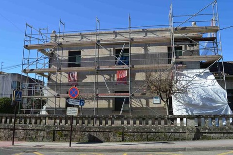 As obras veñen a paliar as humidades e filtracións producidas dende a parte superior da fachada e do tellado.