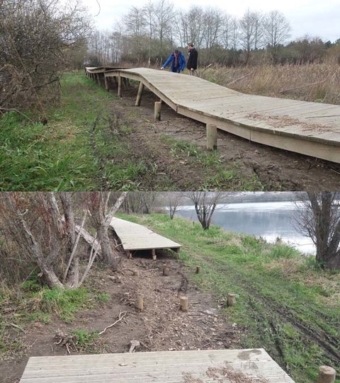 Deste xeito, foi necesario reflotar e repoñer uns 60 metros de tarima de madeira, colocando bases novas.