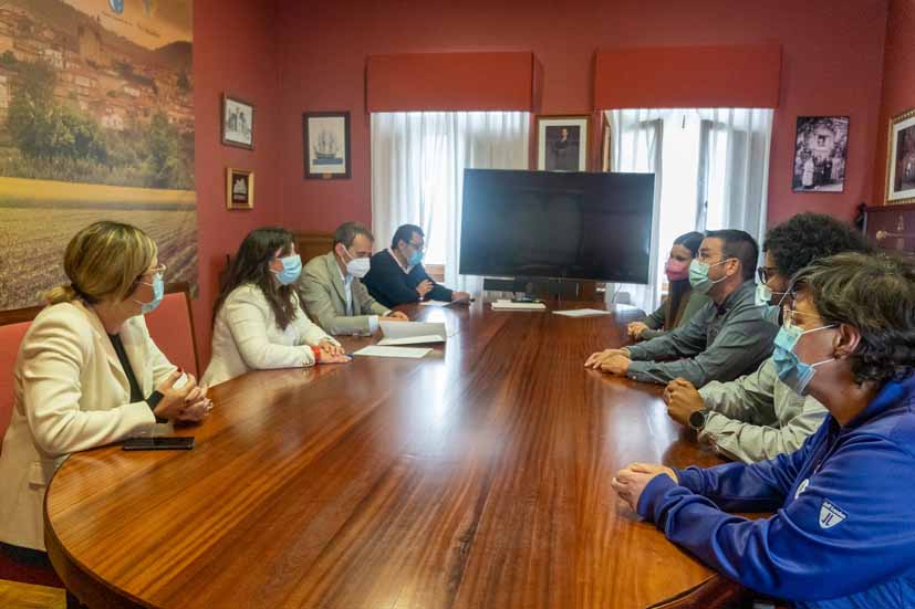 Previa á sinatura do convenio o alcalde de Tui, Enrique Cabaleiro, as concelleiras de Igualdade, Ana Mª Núñez, e Educación, Sonsoles Vicente, e o concelleiro de Servizos Sociais, Ismael Diz, xunto a técnicas municipais, reuníronse cos membros de ACCEM, Daniela Bóveda, responsable territorial adxunta en Galicia, Gemma Landesa, responsable do programa Gadea, e Hafdallah Menni, responsable do programa Novicom.