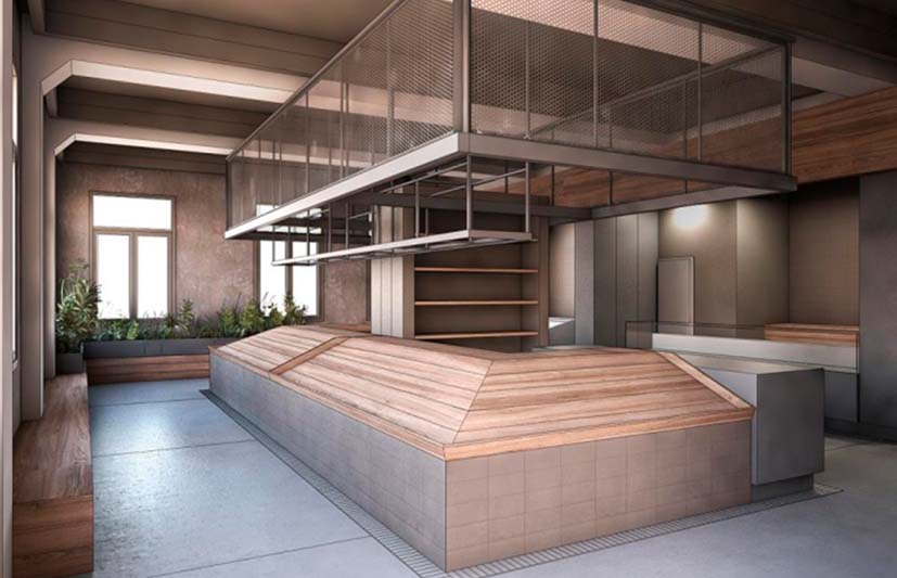 O mercado contará con cinco postos comerciais no espazo principal que se distribuirán nunha illa central con dous postos de froita, horta e flores e nunha franxa lateral con carnicería, peixaría, despacho de pan e espazo para venda e promoción de produtos locais.