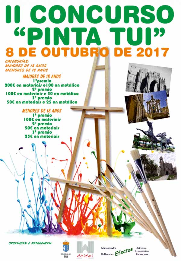 O Concello de Tui, en colaboración coa Asociación de Comerciantes e Industriais de Tui, ACITUI, convoca por segundo ano consecutivo o Concurso de pintura "Pinta Tui" que se celebrará o domingo, 8 de outubro de 2017. O obxectivo do mesmo é promover e achegar a arte e a cultura aos visitantes e incentivar a dinamización da oferta turística e as actividades no concello.