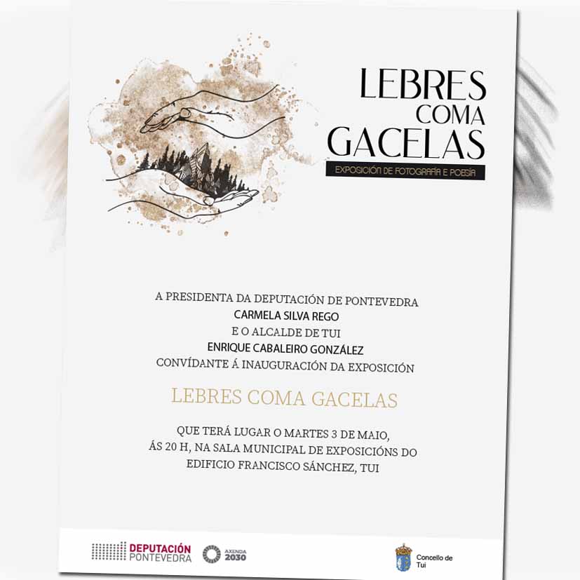 O próximo martes, 3 de maio, ás 20 h, na zona anexa da Sala Municipal de Exposicións inaugurarase a exposición “Lebres coma gacelas” promovida pola Deputación de Pontevedra.