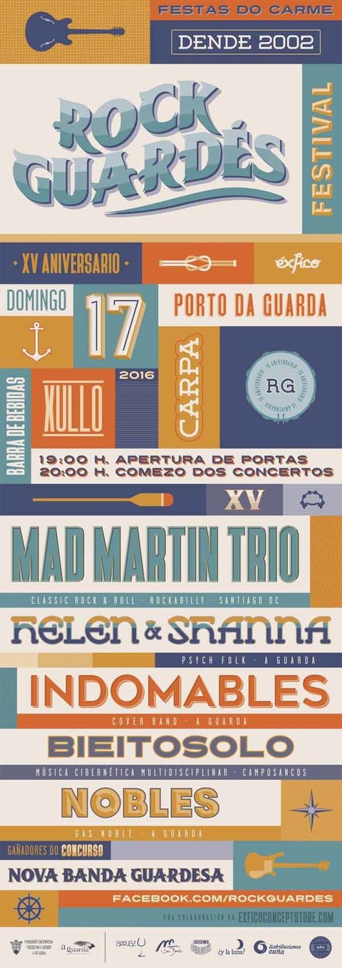 O Domingo día 17 de Xullo de 2016 terá lugar no Porto de A Guarda a XV edición do Festival Rock Guardés, que contará nesta edición con 5 bandas participantes, entre elas MadMartin trio(Stgo. de Compostela), Helen & Shanna, Indomables Coverband e Bieitosolo.