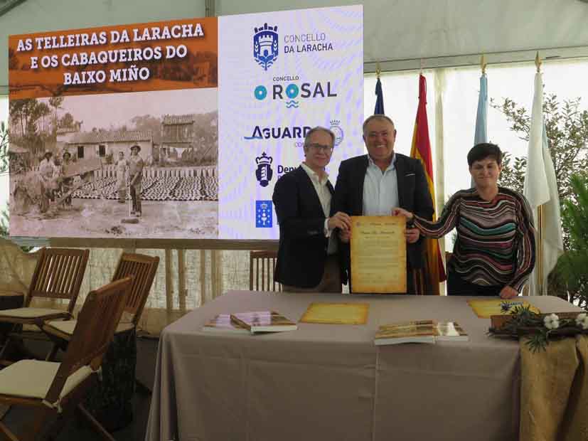 El acto culminó con la presentación del libro 'As telleiras da Laracha e os cabaqueiros do Baixo Miño', obra del escritor y documentalista Xabier Maceiras, que documenta las conexiones históricas entre los tres concellos y la relevancia de la comarca del Baixo Miño en la industria de las telleiras de A Laracha. El libro destaca tanto la participación de empresarios como de los trabajadores procedentes del Baixo Miño, que durante décadas sostuvieron la producción artesanal en estas fábricas.
