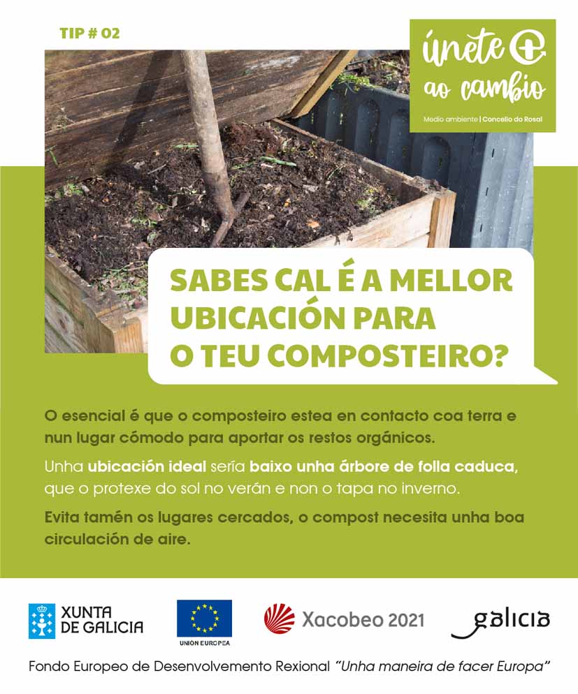 Trátase dunha acción posta en marcha como parte da estratexia do Concello do Rosal para potenciar a compostaxe individual nas vivendas do municipio, nas que actualmente hai instaladas 408 composteiros con capacidade para tratar entre todos eles unhas 147 toneladas ao ano. A iniciativa forma parte dun programa de prevención, recollida separada e valorización dos biorresiduos destinadas ao fomento da compostaxe in situ, creado ao abeiro dunha liña de axudas da Consellería de Medio Ambiente, Territorio e Vivenda cofinanciadas polo Fondo Europeo de Dsenvolvemento Rexional con cargo ao programa Feder Galicia 2014-2020