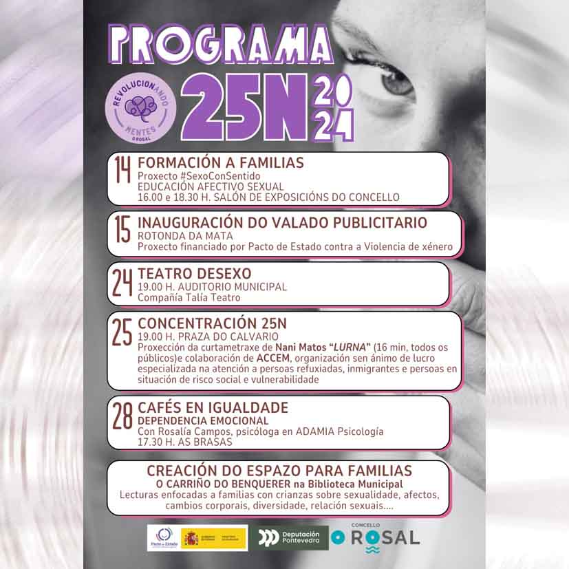 El Concello do Rosal presenta un mes de actividades por el Día Internacional para la Eliminación de la Violencia contra las Mujeres, con un programa que incluye teatro, charlas y talleres para fomentar la igualdad y sensibilizar a todas las edades.