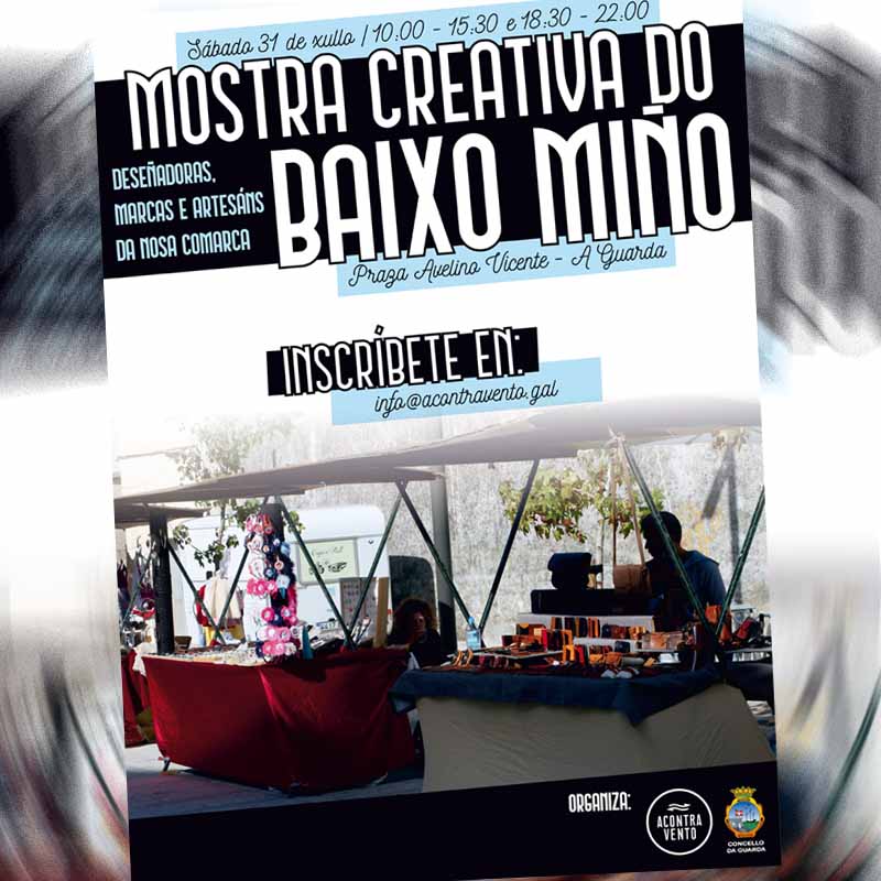 O Concello da Guarda e Acontravento, marca de roupa local, presentan a I Mostra Creativa do Baixo Miño, que se celebrará o día 31 de Xullo na Praza de Avelino Vicente (As de Copas). No evento participarán persoas deseñadoras, marcas e artesáns da nosa comarca.