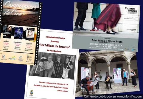 O venres hai unha cita co primeiro pase de "Os trillizos da Socorro", obra do Teatro Vamolandando que se representará no Centro Cultural ás 21 horas e que está organizado polo propio grupo "Vamolandando Teatro" en colaboración con concello da Guarda. A obra é unha comedia que conta a historia de Socorro e os seus tres fillos, uns trillizos ya adultos que, non obstante, están moi malcriados e só pensan en xogar e facer cousas de nenos. Isto cambiará coa chegada de Evarista, a asistenta.