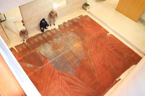 No próximo mes, será sometido a unha limpeza superficial para a eliminación de residuos e fungos e posteriormente levarase a cabo a fixación da policromía. Unha vez concluídos estes traballos será exposto durante as festas de San Telmo nunha sala que mantén unhas condicións climáticas estables e que presenta a característica de que se atopa a dobre altura. Deste xeito o espectador poderá observar a peza dun modo semellante a como se estivese na platea ou nos palcos do teatro. A exhibición dará a coñecer este elemento singular do patrimonio tudense e de Galicia, oculto durante case 50 anos e ao mesmo tempo permitirá a súa necesaria ventilación e estiramento. Non obstante, nun futuro inmediato será necesaria unha intervención para a súa completa restauración.