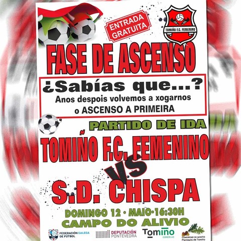 Domingo 12 as 16 : 30 horas temos unha cita ca historia, o Tomiño FC Femenino ten a opción de voltar a subir a Primeira División Galega 6 anos despois!!