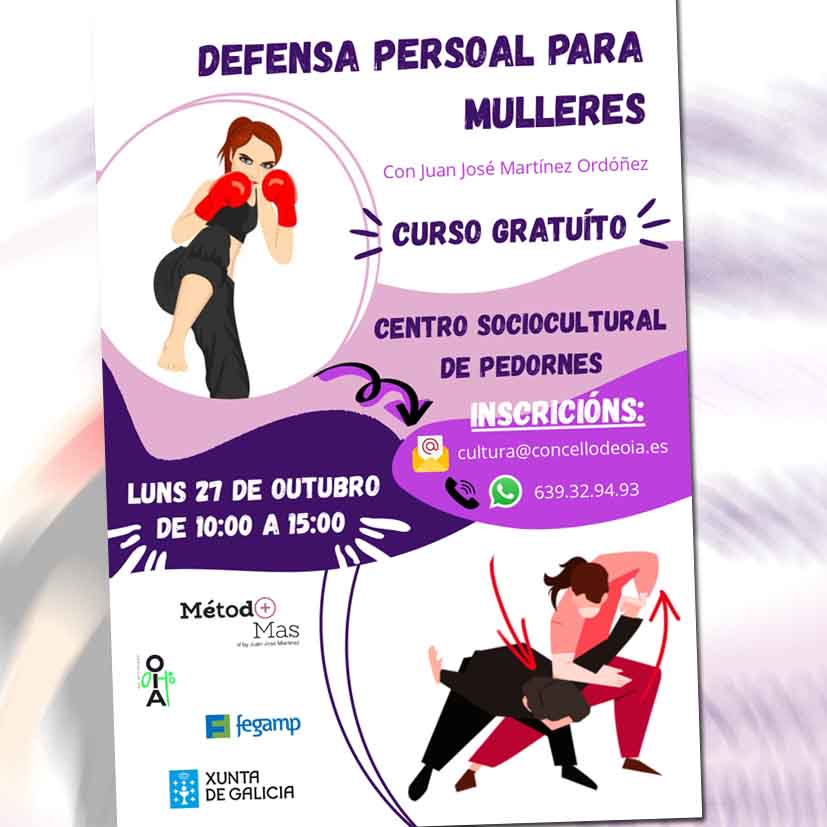 El Concello de Oia mantiene abierto el plazo de inscripción para participar en un curso gratuito de defensa personal para mujeres, que tendrá lugar el domingo 27 de octubre en el Centro Sociocultural de Pedornes, en horario de 10.00 a 15.00 horas.
