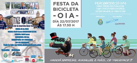 El sábado día 22 se celebrará la FESTA DA BICICLETA en Oia, organizada por el Concello de Oia con la colaboración de Ciclismo Oiense, la Diputación de Pontevedra y la Xunta de Galicia. A partir de las 17:30 h. tendrá lugar la salida desde el Monasterio, los ciclistas participantes recorrerán 10 km semillanos, asequibles a todas las edades. La ruta del recorrido será por la capilla de San Sebastián y por parte del carril bici dirección A Guarda y regreso a Oia. Para participar es necesario el uso de casco protector así como seguir las instrucciones de los organizadores para el buen desarrollo del paseo ciclista. Antes de la salida se entregará a cada participante una mochila y un dorsal para poner en la tija del sillín. Al finalizar el paseo ciclista, con el número del dorsal se participa en el sorteo de 2 bicicletas, camisetas y diversos regalos, también habrá un avituallamiento líquido gentileza de Ciclismo Oiense.