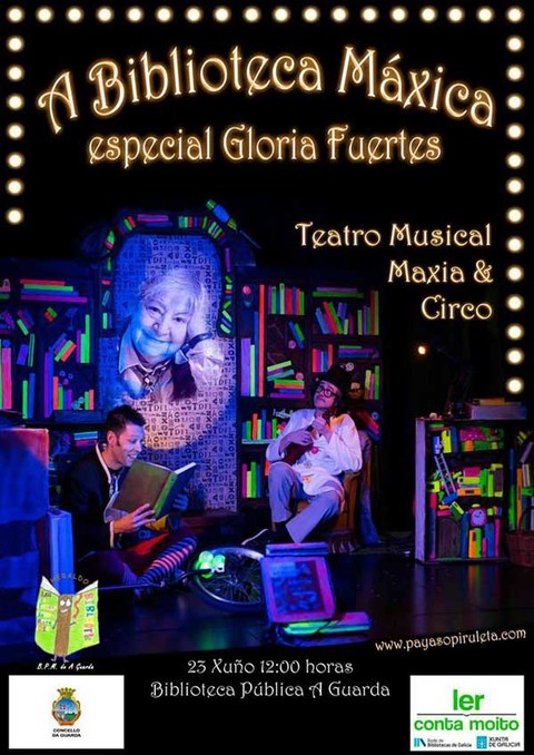 Nenos, nenas e familias poderán disfrutar dunha divertida aventura con Payaso Piruleta@Cía e o seu espectáculo "A Biblioteca Máxica: especial Gloria Fuertes". Os asistentes coñecerán a Don Renato, un bibliotecario atípico que transforma contos en cancións, repara libros con maxia, convive con seres fantásticos co obxectivo de motivar á animación lectora do público que o visita mediante o teatro musical e a maxia para dar a coñecer a unha das escritoras mais queridas.