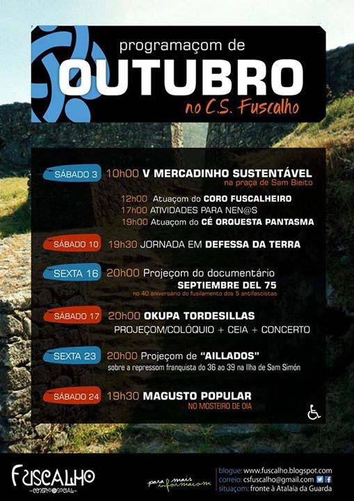 PROGRAMACIÓN DE OUTUBRO NO CS FUSCALHO DE A GUARDA