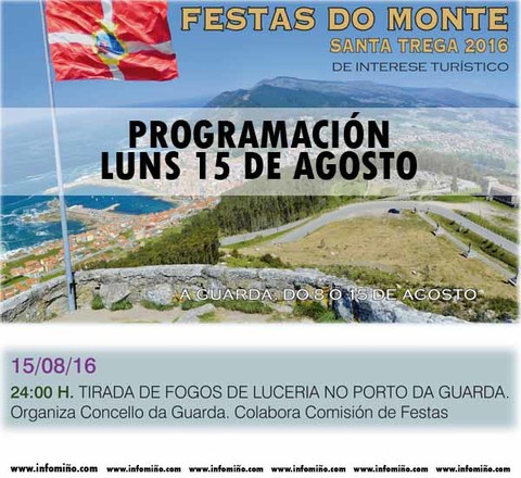 Programación Festas do Monte 2016 - O Luns 15 gran tirada de fogos de lucería no Porto de A Guarda
