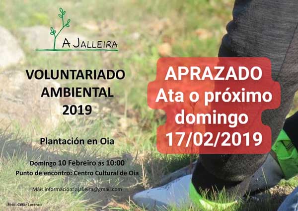 Dende a Jalleira convidámosvos a participar no noso voluntariado anual de plantación o domingo día 17, este ano vai ser nos montes de Oia, no lugar da Salgosa, preto do miradoiro da estrada Oia- A Valga.