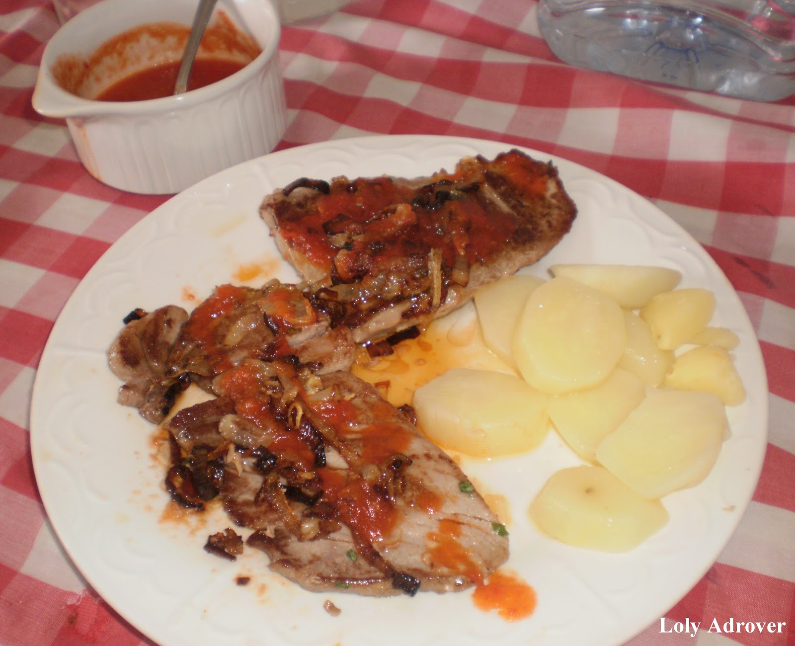 Servir con la cebolla por encima y con la salsa agridulce, acompañar con patatas cocidas.