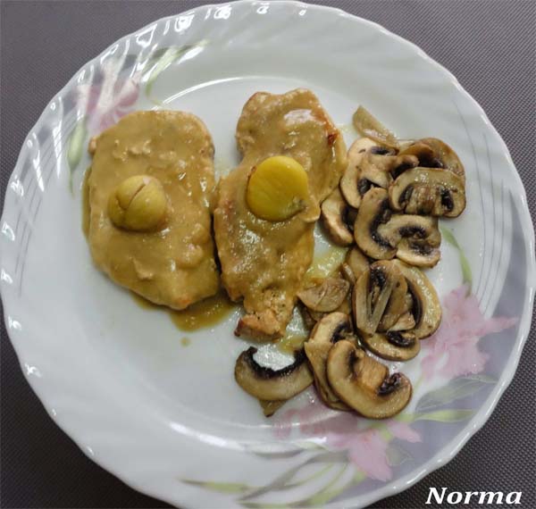 RECETA: FILETES DE LOMO DE CERDO CON SALSA DE CASTAÑAS Y CHAMPIÑONES