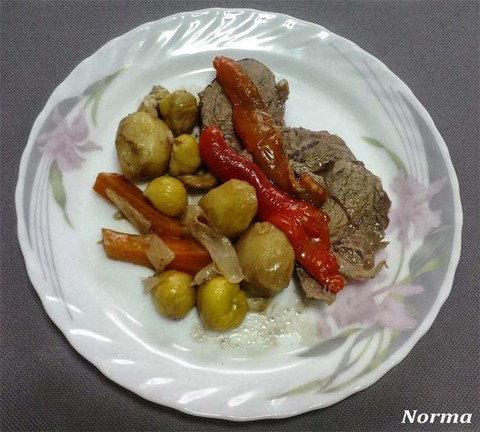 RECETA: JARRETE DE TERNERA CON CASTAÑAS Y VERDURAS AL HORNO