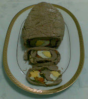 Pedir en la carnicería, matambre, ( carne de ternera para hacer enrollada). Esta carne suele ser de la parte de la barriga de la ternera. Que por favor la limpie de grasa y que la abra, para poder enrollar mejor. Ponerle un poco de vinagre para que ablande la dejamos media hora. Poner a cocer los huevos con la zanahoria cortada en juliana unos 10 minutos y reservar. En una olla a presión poner agua por la mitad, con un poco de sal, el puerro una cuarta parte del pimiento las hojitas de cilandro y la del apio y poner al fuego. Estiramos la carne y poner la acelga ya limpia y que se le quitó la penca mas gorda, el pimiento restante cortado en juliana, la zanahoria y los huevos cortados por la mitad, distribuido por la carne de tal forma que se pueda enrollar y que quede bonito a la hora de cortar. Enrollar bien apretado y coser la parte final, para que a la hora de cocer no salga nada. Después atar bien todo alrededor si lleva bastante hilo mejor. (Usar hilo de atar chorizos.) Poner a cocer en la olla a presión cuando empieza hacer ruido contar unos cuarenta minutos y apagar, dejar más o menos una hora, en la olla y después quitar y poner en una fuente plana, se pone otra por encima también plana y encima poner peso, algo que pese por lo menos unos cuatro kilos, para que quede aplastado para que a la hora de cortar haga un corte bonito. Hay que dejar con ese peso doce horas. Se sirve frío. Templado, con ensalada, en bocadillo etc. Al gusto del consumidor. Si se hace en una olla normal tiene que cocinar una hora y cincuenta minutos más o menos.