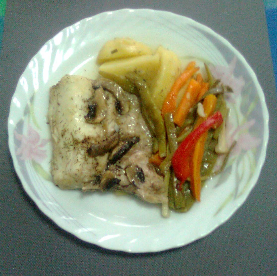 Cogemos una placa de horno y dos trozos de papel de aluminio algo grandecitos y ponemos los trozos de la merluza encima, le ponemos un poquito de sal, pimienta y el eneldo. Las verduras dándole un hervor primero a las zanahorias, judías y patatas las colocamos por encima junto con los ajetes y los champiñones.