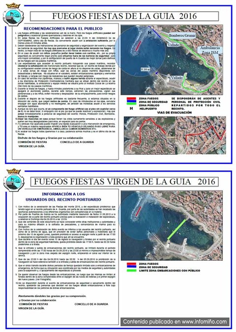 1. Con motivo de la celebración de las Fiestas del monte 2016, y del espectáculo pirotécnico que tendrá lugar en el recinto portuario de A Guarda, por parte de las autoridades se han recabado las oportunas autorizaciones a los diferentes organismos con competencias en la materia.