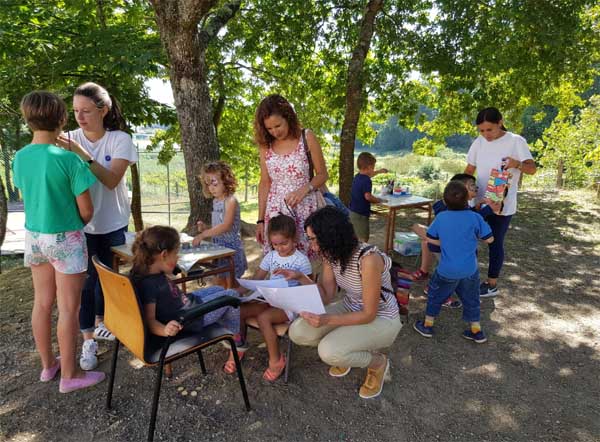 Sara Vicente Salcidos, concelleira de Cultura e Sabela Rodríguez Jardón concelleira de Muller e Igualdade, visitaron o campamento onde os máis pequenos celebraron o remate do curso.