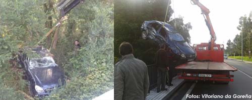 Por causas que se desconocen el vehículo, que circulaba en dirección A Pasaxe, atravesó el carril contrario, chocando en primer lugar contra una valla metálica y posteriormente cayendo por un terraplén de unos 4 metros para terminar volcado tras dar varias vueltas de campana.