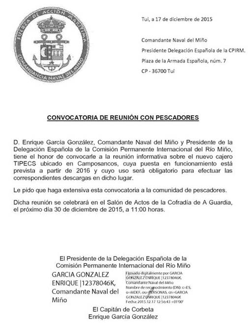 Mércores 30 de Decembro de 2015 ás 11:00h na Cofradía de A Guarda
