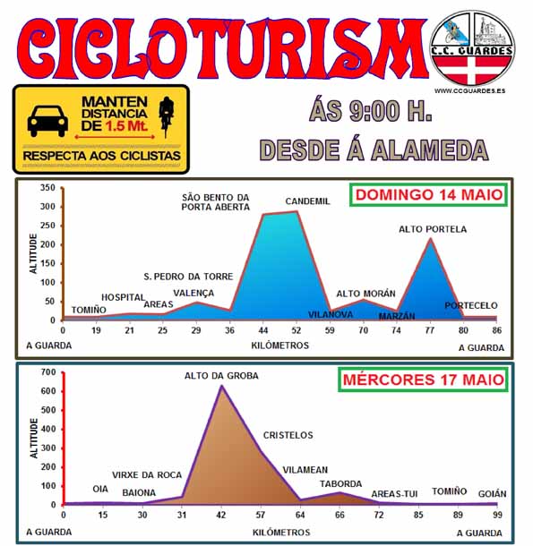 Salidas del Club Ciclista Guardés este domingo 14 de mayo y el miércoles 17.