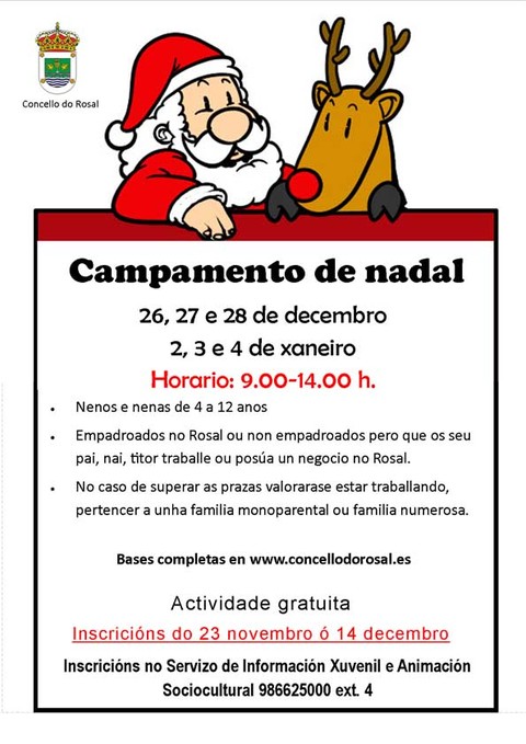 O campamento desenvolverase os días 26, 27 e 28 de decembro e 2, 3 e 4 de xaneiro de 9:00 a 14 :00 horas.