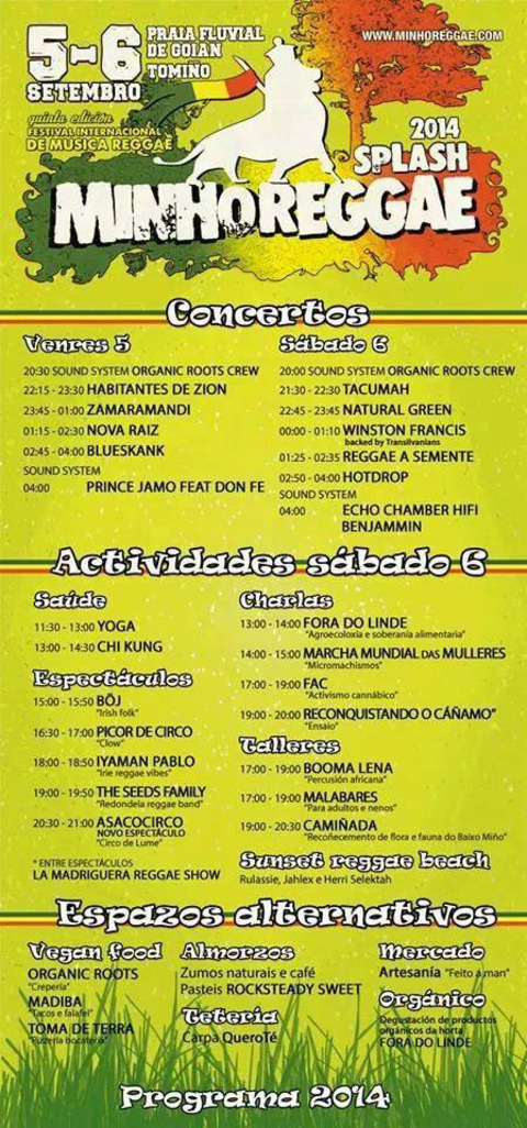 Programación V Minho Reggae Splash 2014 5-6 Setembro 2014 - Espazo Fortaleza Goián