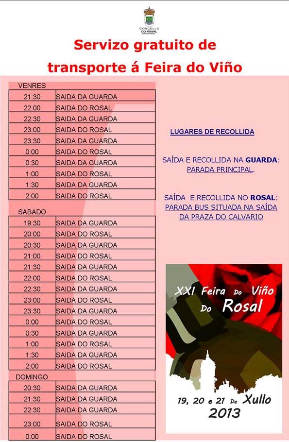 SERVICIO GRATUITO DE TRANSPORTE EN LA XXI FEIRA DO VIÑO DE O ROSAL