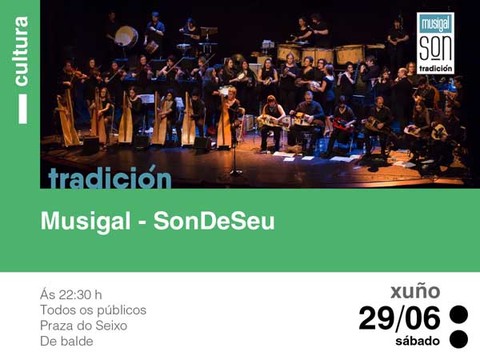 A orquestra de música folk contemporánea SonDeSeu abrirá en concerto a Axenda de Verán do Concello de Tomiño. O sábado 29 de xuño, a formación actuará na Praza do Seixo a partir das 22.30 horas, cun repertorio con temas procedentes da tradición oral da música popular de Galicia, arranxados especialmente para a formación polos seus compoñentes.