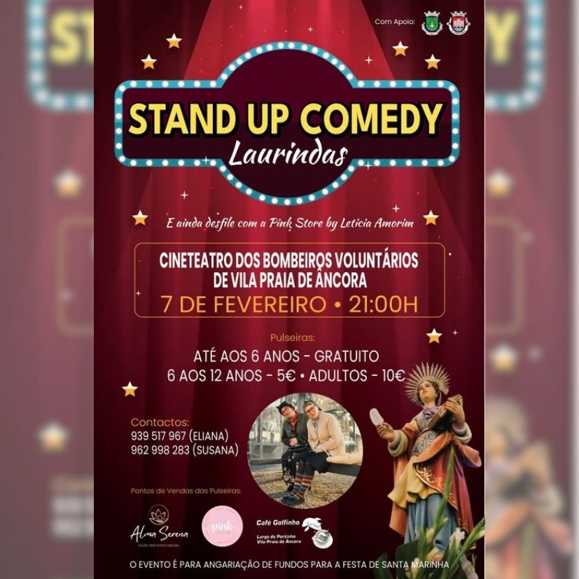 El espectáculo de Stand Up Comedy Laurindas se celebra el 7 de febrero en el Cineteatro de los Bomberos de Vila Praia de Ancora a beneficio de la Festa de Santa Marinha.