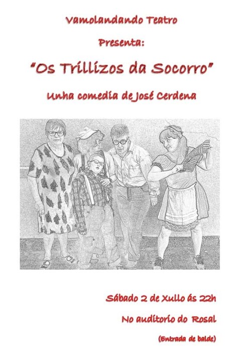 Este sábado, 2 de xullo, ás 22.00 horas no Auditorio Municipal do Rosal o grupo de teatro Vamoladando Teatro presenta a obra "Os Trillizos dá Socorro"