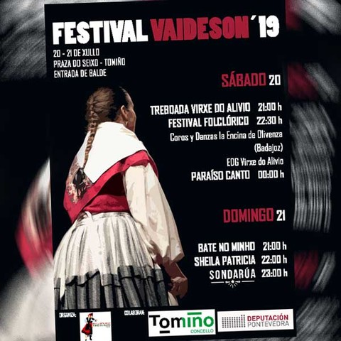 Esta fin de semana a praza do concello de Tomiño acolle a 2ª edición do festival VAIDESON , organizado pola Asociación Cultural Escola de Danzas e Gaitas Virxe do Alivio .