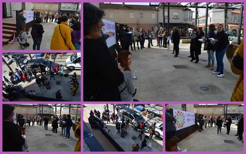 Aínda que o programa oficial comezou na tarde deste mércores, na Casa da Cultura, coa mesa redonda "Feminismo para avanzar", a Praza do Seixo acolleu xa dende o mediodía varios actos conmemorativos. Comezando por un parón duns minutos, vestiuse logo a entrada do Concello cun mandala participativo "Se paramos as mulleres, paramos o mundo", elaborado previamente polo paro internacional das mulleres.