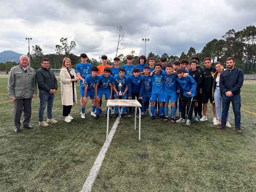El éxito no se detiene ahí. El equipo Cadete B también celebró por todo lo alto su título liguero, en una temporada donde la constancia y el trabajo en equipo fueron la clave. Durante el acto de entrega del trofeo, compartieron escenario con personal de la Federación Gallega de Fútbol, responsables de la EF Denis Suárez y el concejal de Deportes Marcos Troncoso, reconociendo el mérito de este grupo de jóvenes promesas.