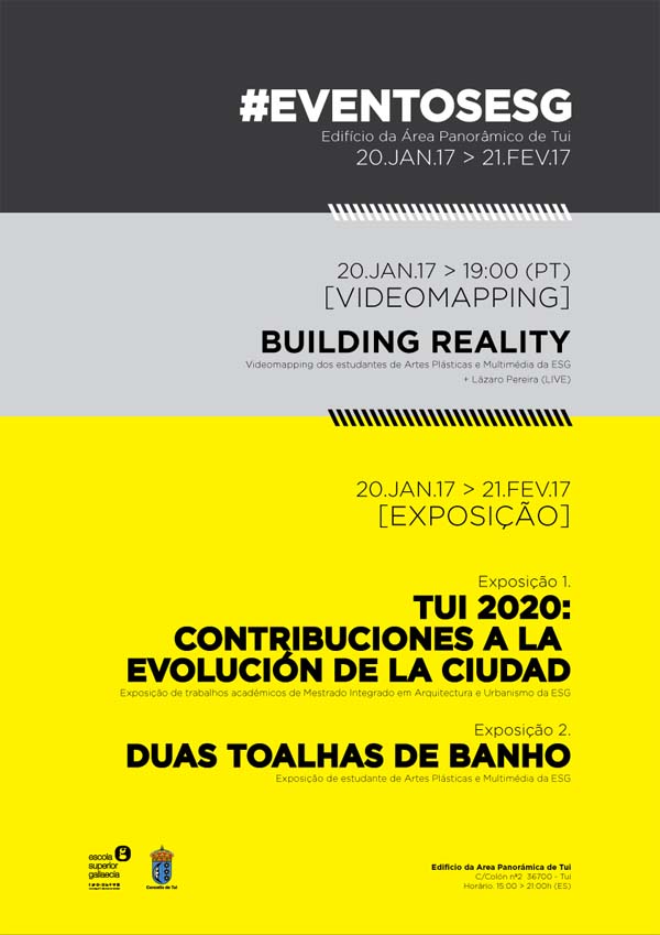 No próximo dia 20.JANEIRO pelas 19:00 (PT) no Espaço Cultural do Edifício Panorâmico de Tui, poderão assistir à inauguração de uma exposição coletiva dos estudantes da Escola Superior Gallaecia.