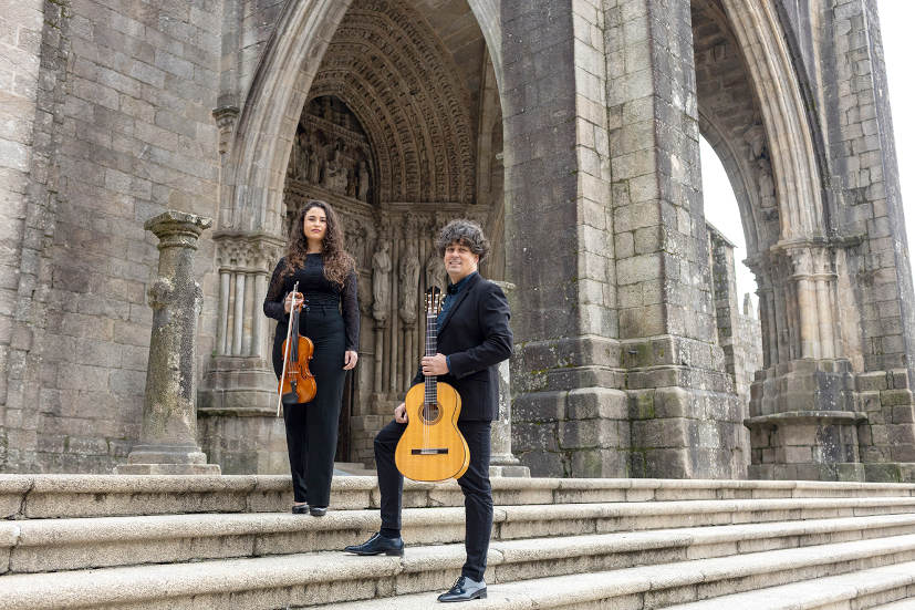 El recital comenzará con varias Sonatas da Chiesa del compositor barroco Arcangelo Corelli, que aportarán un tono solemne y ceremonial acorde con la importancia del acto. Posteriormente llegará uno de los momentos más esperados: la estreno absoluto de la obra “Catedral atlántica”, compuesta especialmente para esta ocasión por el reconocido creador gallego Fernando Buide del Real, una de las figuras más destacadas de la música contemporánea. Esta pieza, escrita para violín y guitarra, será interpretada por Areal y Diz, fortaleciendo el vínculo entre el talento local y el patrimonio tudense.