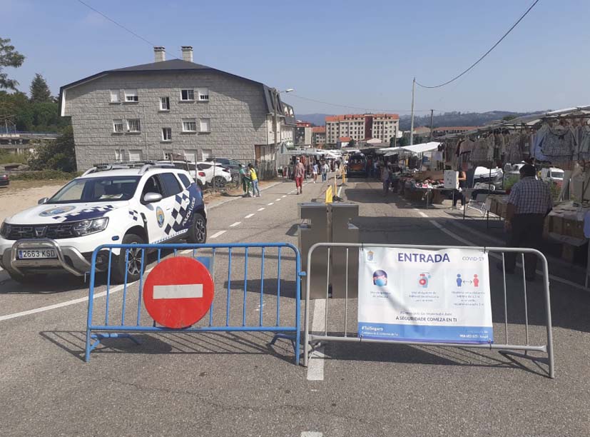Dende o Concello apostouse por un mercado seguro co establecemento de xel hidroalcólico nas entradas e saídas do mercado, fixando un sentido de tránsito único con percorridos separados por valos e cinta e marcando unha separación de 6 metros con respecto ao posto situado enfronte e coma mínimo metro e medio co lateral. Amais nas inmediacións habilitouse un aparcamento gratuíto para facilitar a asistencia de público.