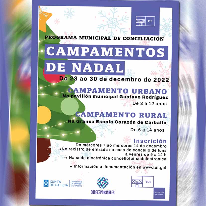 Esta Navidad, coincidiendo con las vacaciones escolares, el Concello de Tui oferta dos campamentos de Navidad, uno rural que se desarrollará en la Granxa Escola Corazón de Carballo y otro urbano, que se realizará en el pabellón Gustavo Rodríguez y en otros ámbitos del municipio. Ambos se celebrarán entre el 23 y el 30 de diciembre y tendrán carácter gratuito.